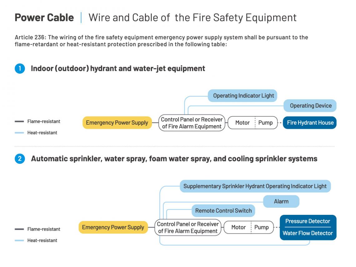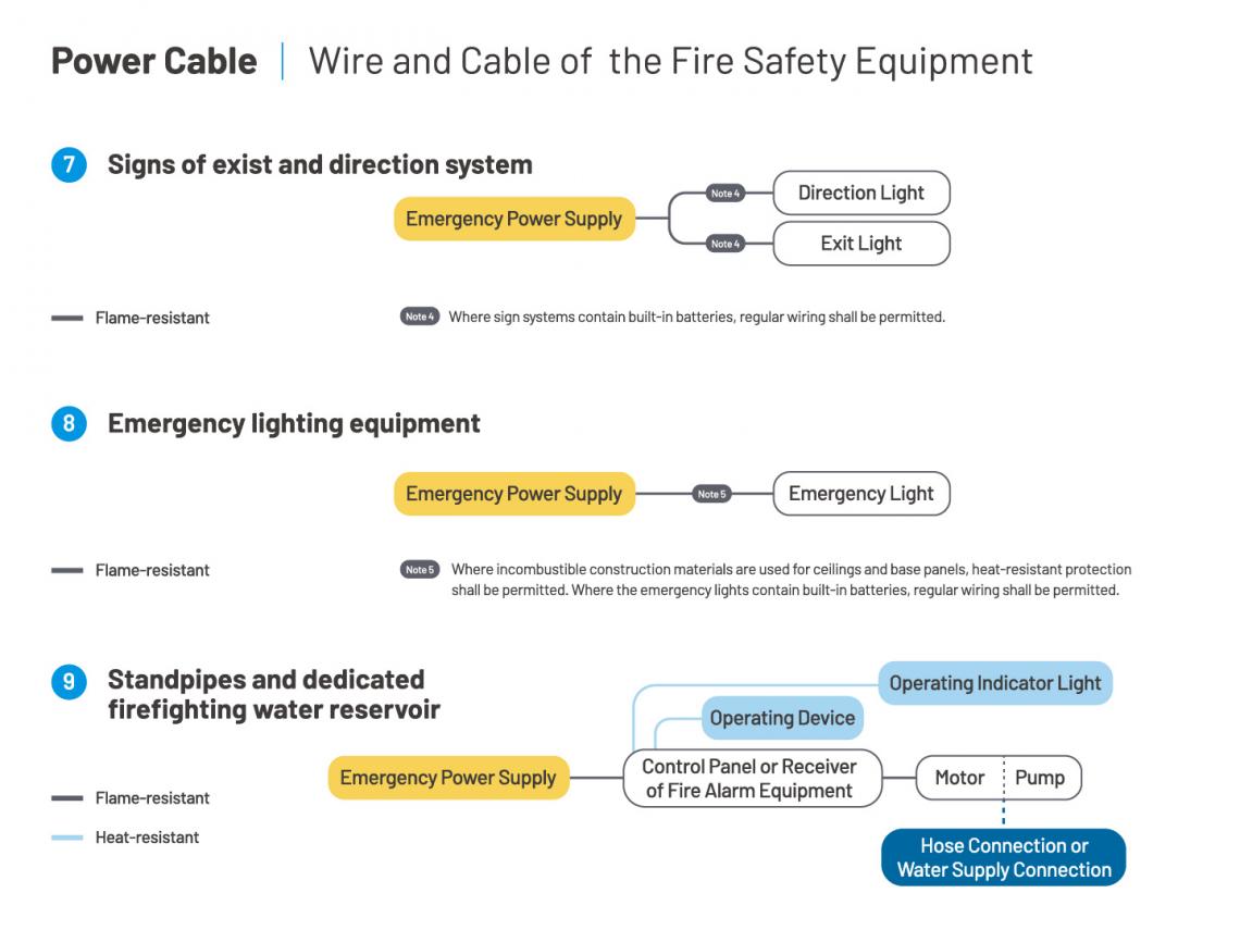 Meeting the「Approval Criteria for Heat Resistant Wires and Cables」and the 「Approval Criteria for Fire Resistant Cables」, Walsin Lihwa’s fire-resistant wires and cables have gain relevant accreditations. For a certain period of time, the products can maintain normal operation of the fire safety equipment, which use emergency power supply in case of fires, to help protect lives and property.