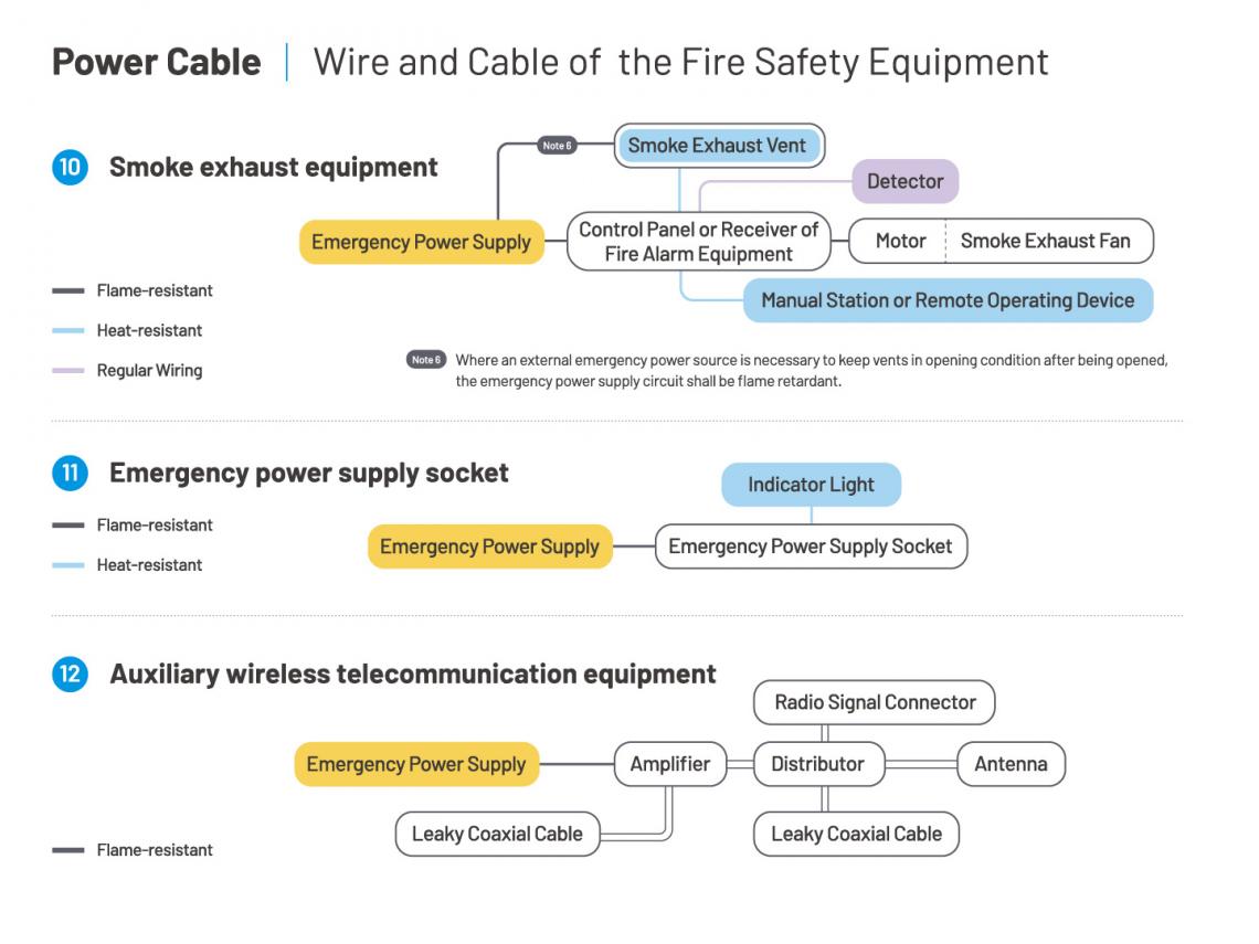 According to the Standard for Installation of Fire Safety Equipments Based on Use and Occupancy, wiring of the fire safety equipment emergency power supply system shall be fire-resistant or heat-resistant.